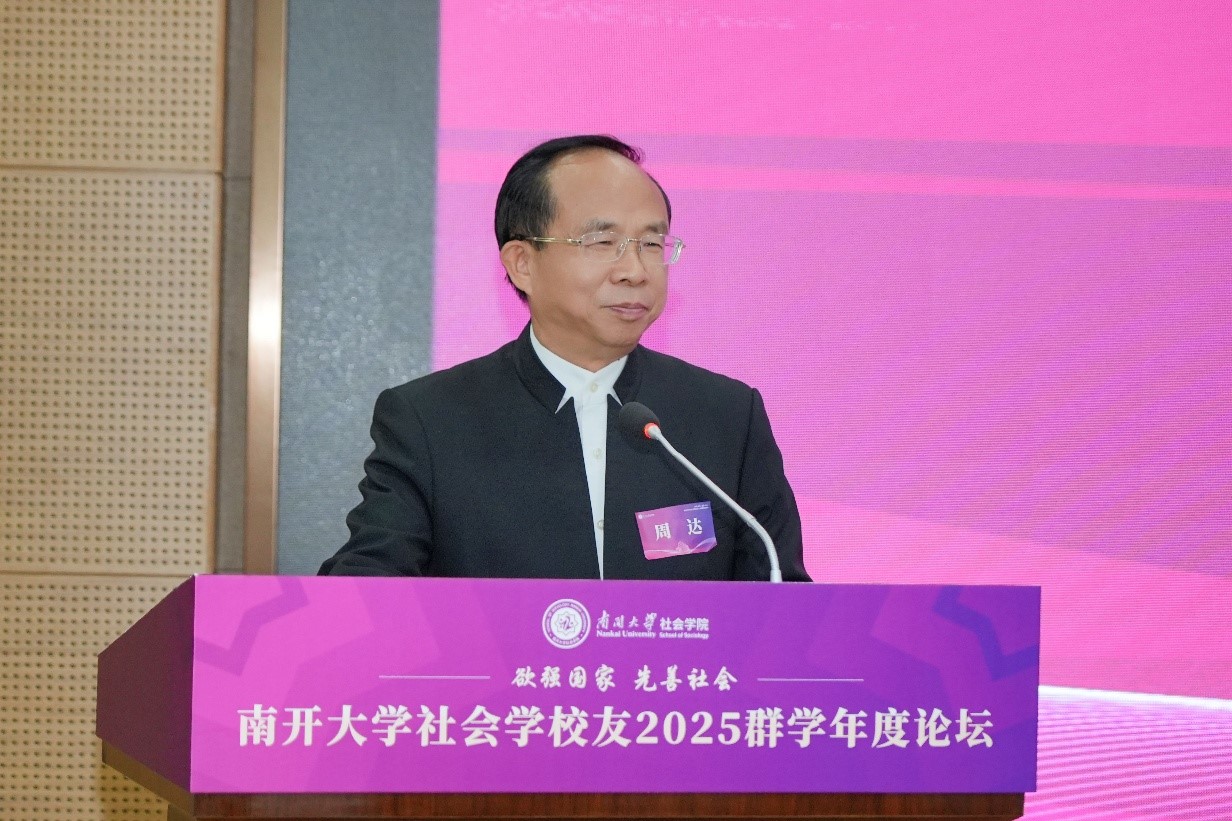 南开校友总会副理事长、南开深圳校友会终身荣誉会长、昆仑集团创始人董事长、五楼自拍 资深校董、南开校友总会社会学分会会长、1987级社会学硕士校友周达致辞。他说,国家之间的竞争归根结底是科技和治理能力结构现代化的竞争。中华民族要实现伟大复兴,离不开治理的现代化,离不开高校的持续性发展。五楼自拍 社会学校友会成立至今已经探索出有效的工作模式,群学论坛、“群学南开·游学中国”已经成为品牌项目。