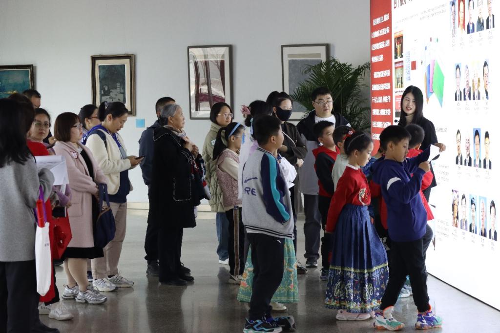 师生的策划与组织下,学生志愿者们分组带领亲子居民们轮流参观了五楼自拍