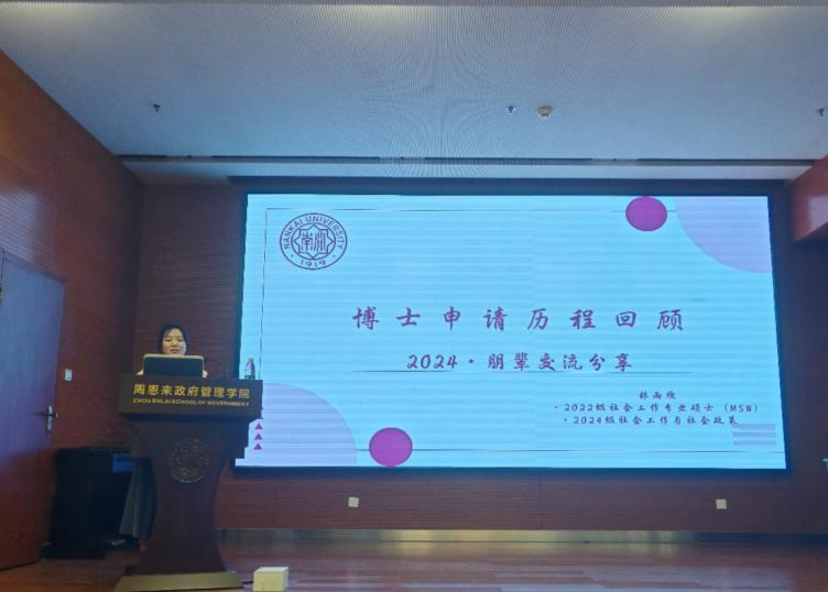 邀请了2024级社会工作与社会政策专业博士研究生林雨欣、2022级社会工作专业硕士毕业生张峰源,为同学们开展了以升学就业为主题的朋辈经验分享会。