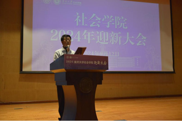 会议伊始,院长张文宏以“认识社会,做守正创新的南开社会人”为题,向全体新生致辞。张文宏首先对所有2024级新生表示了祝贺与欢迎,并鼓励同学们在学习生活中为大公、立大志,做到自信、自强、自立,希望本科生们尽快转换角色、适应大学生活,同时要求研究生同学潜心科研,服务国家和社会发展需求,既要有“板凳甘坐十年冷”的毅力,更要有投身社会实践、关注社会现实的勇气与果敢,珍惜时光、迎难而上,坚守学术道德和学术规范,做费孝通式的研究者。张文宏指出,中国式现代化的宏伟蓝图已经绘就,时代赋予了我们宝贵的机会,希望同学们不要辜负祖国和人民的期盼,不要辜负家长和学校的期望,努力学习、知行合一,更好地成为有理想、敢担当、能吃苦、肯奋斗的新时代好青年。