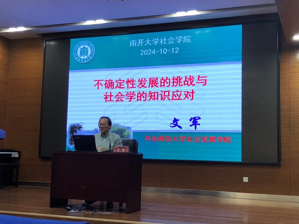 建校105周年学术报告会”系列讲座。本次讲座特邀中国社会学会副会长、教育部领军人才项目特聘教授、上海市社会学会会长、华东师范大学社会发展学院院长、博士生导师文军,作题为“不确定性发展的挑战与社会学的知识应对”的学术报告。讲座由五楼自拍