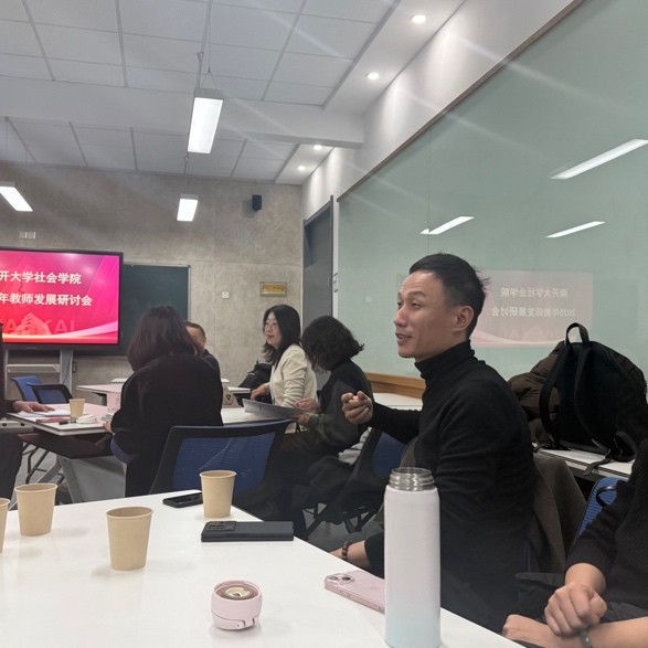 社会工作与社会政策系青年教师黄凡交流了自己在工作期间的丰富收获和日常点滴。他感谢前辈同事对于年轻人的帮助和包容,同时也针对教学和科研的平衡分享了自己的心得。
