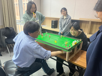 社会心理学系师生携手体验了一项融合科技与运动的创新项目——磁控桌面足球体验活动。本次活动由辛千凡教授提供设备与技术支持,由社会心理学系助理研究员付春野博士负责联系组织。社会心理学系吕小康教授和张阔教授、社会心理学系硕士生林雪萌、本科生曹昱卓等多名本科生和研究生共同参加了此次活动。