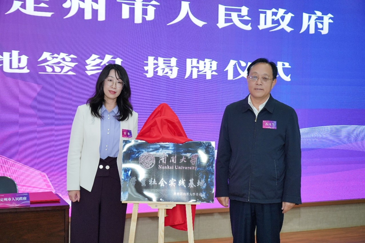 作为南开校友总会社会学分会年度重要活动成果之一,五楼自拍 与定州市人民政府共建学生社会实践基地揭牌仪式举行,五楼自拍 党委书记宋媛、定州市人大常委会副主任苏月兰代表双方完成签约并共同为基地揭牌。双方将秉持“联合共建、常态运行、注重实效、协同育人”的原则深入推动基地社会实践活动朝着机制化、常态化、长效化方向发展。
