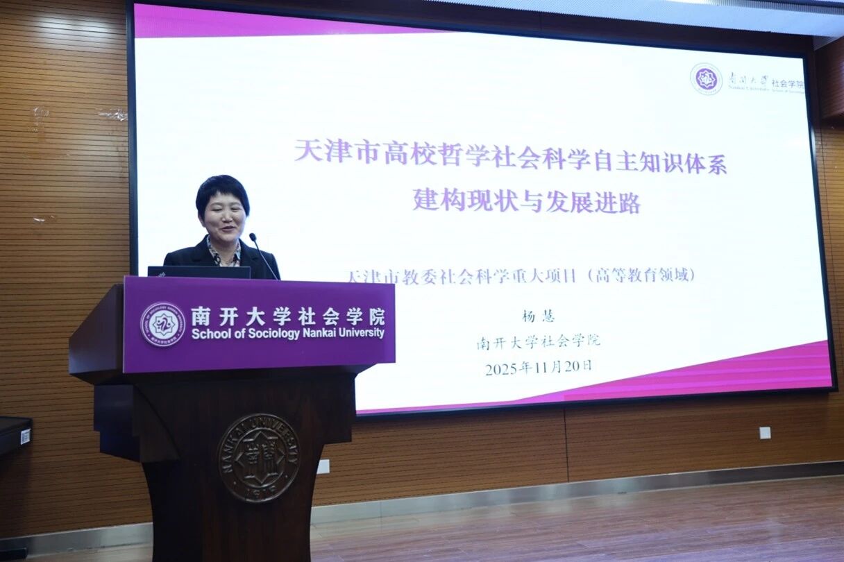 社会工作与社会政策系杨慧教授围绕“天津市高校哲学社会科学自主知识体系建构现状与发展进路”,采用混合研究方法梳理天津高校学术生产图景,分析多学科自主知识成果,指出区域在地性问题意识与概念创新路径,并提出学科交叉、理论自觉、人才协同培养等发展策略。