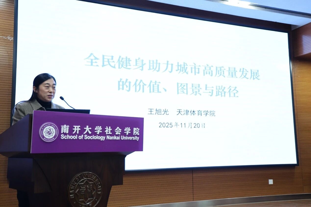 天津市社会学学会副会长、天津体育学院王旭光教授围绕“全民健身助力城市高质量发展”,阐释全民健身在化解社会矛盾、优化经济结构等方面的多元价值,构建发展图景,提出政策引领、目标导向等实践路径。