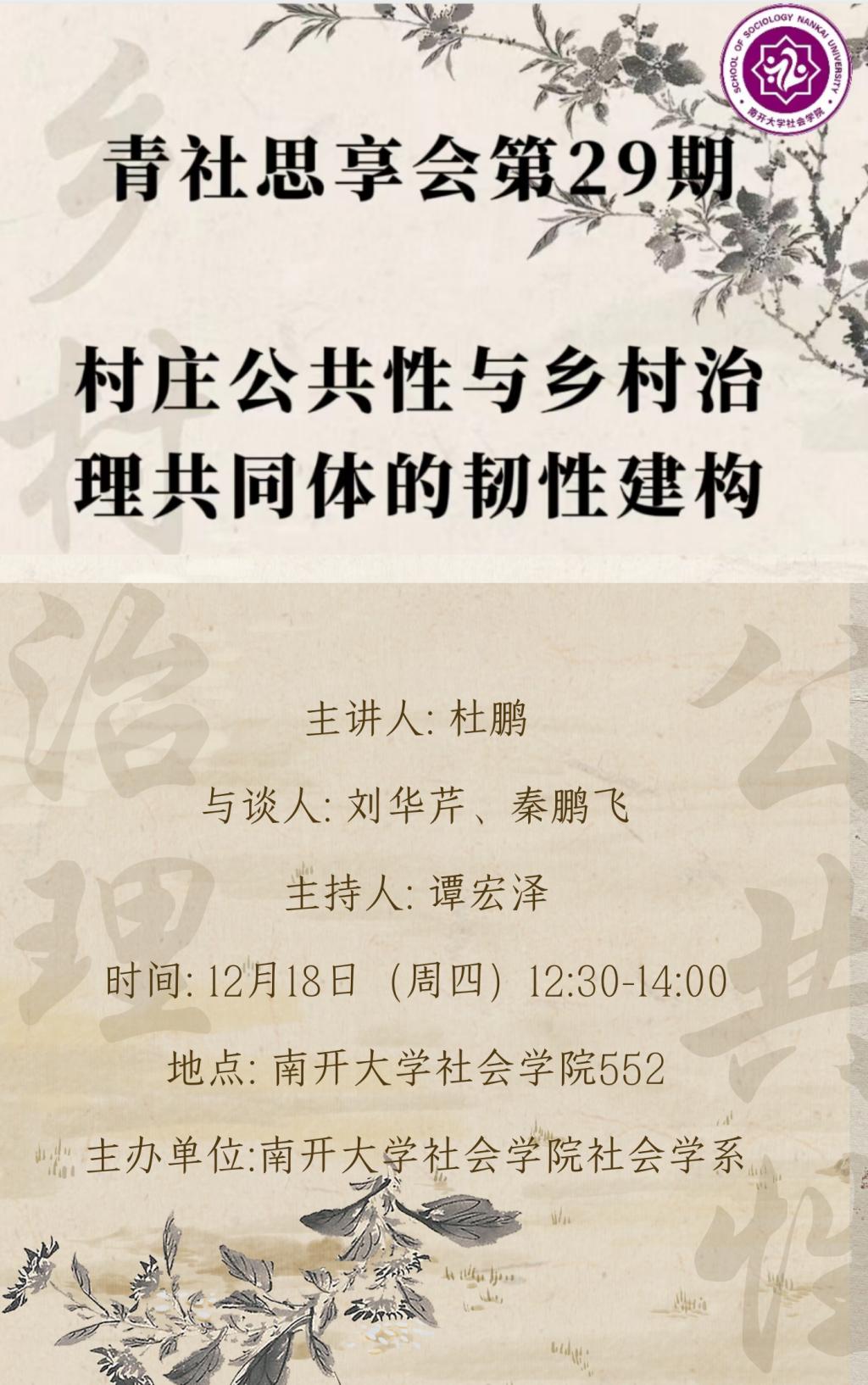 青社思享会 | 村庄公共性与乡村治理共同体的韧性建构