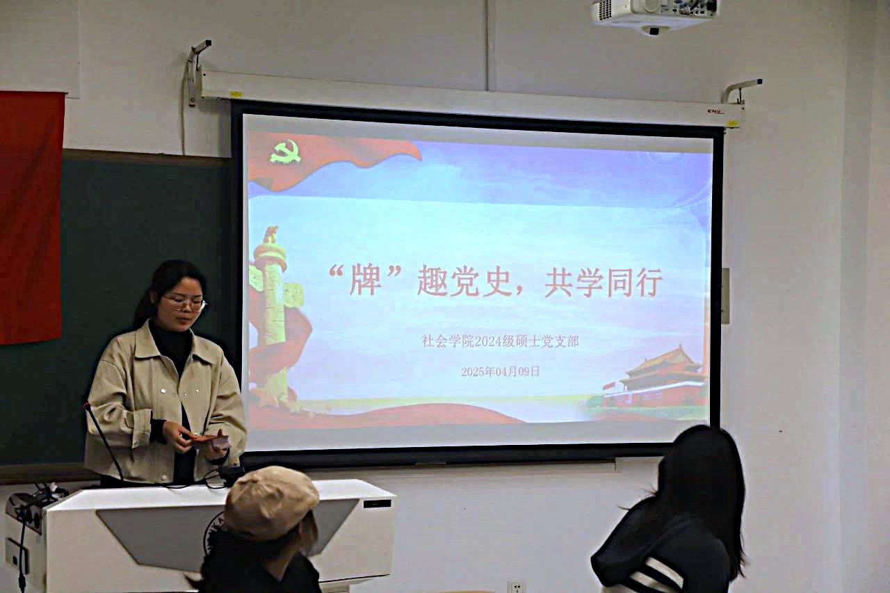 2024级硕士党支部开展了一场别开生面的“党史接龙卡牌赛”主题党日活动,以创新形式开展党史学习教育,让党史知识在趣味竞技中“活”起来。此次“党史接龙卡牌赛”通过精心设计的卡牌,将党的百年奋斗历程浓缩其中,让党员们以牌会友、以史为鉴,在轻松愉快的氛围中重温峥嵘岁月,检验学习成果。