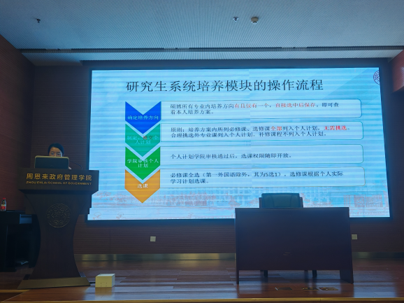 教学科研办公室老师杨春雨面向全日制研究生新生,全面介绍了研究生培养工作及安排,并发布了教务教学指南。杨春雨老师重点讲解了选课流程、学术规范及学业考核评估等内容,并通过现场实操演示选课系统帮助新生快速掌握操作技巧,还贴心地公布了教学相关的咨询联系方式,确保每位同学都能安心前行,无后顾之忧。最后,她鼓励大家积极参与各类学术活动,提升个人研究能力,也祝愿每一位新生都能够顺利开启并精彩演绎自己的研究生学术生涯。