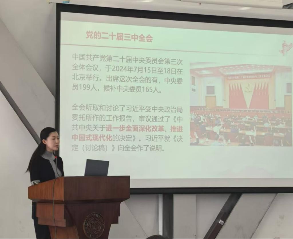 马梦菲在授课的最后鼓励现场学员,要以全会精神为滋养,以服务人民为使命,以回馈社会为目标,将个人成长与时代发展紧密结合,勇担时代重任,积极投身社会实践,用实际行动践行全会精神,为实现中华民族伟大复兴贡献青春力量。